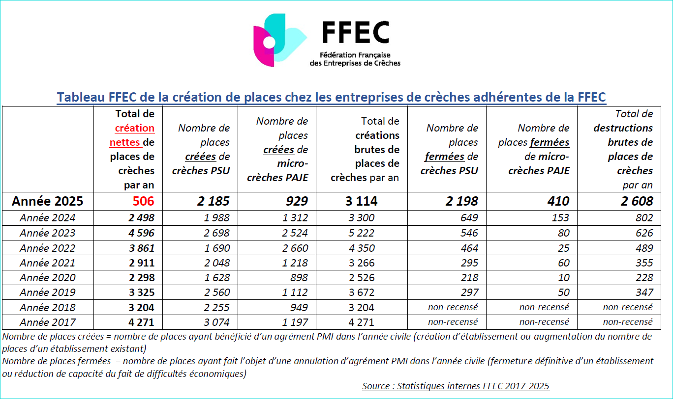 Sources statistiques : 20 03 2026 - Stats crèches FFEC https://ff-entreprises-creches.com/